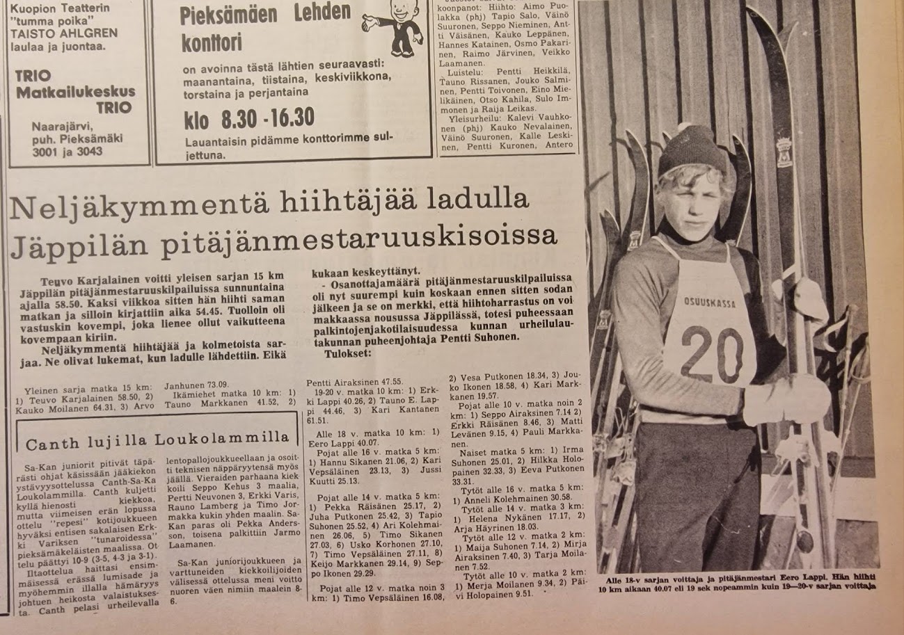 Jäppilän Urheilijat on yli 90 v. vanha maineikas urheiluseura ja näin talviaikaan perinteisiä lajeja ovat olleet maastohiihto ja jopa mäkihyppy!