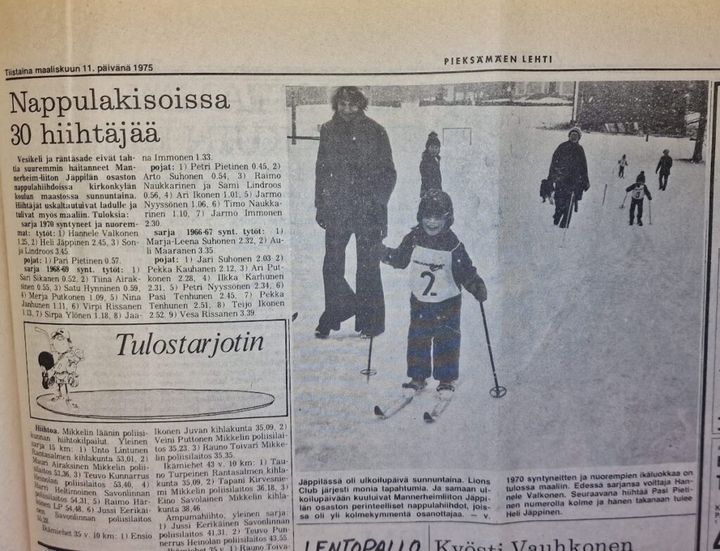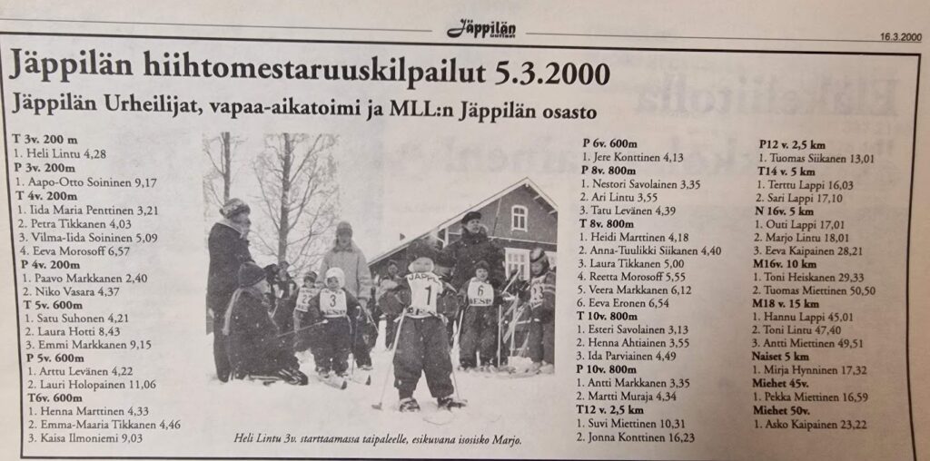 Hiihtokilpailuja ovat järjestäneet JäU.n lisäksi myös MLL lasten nappulahiihtoja sekä Lions Club hiihtotapahtumina. Tässä muutamia kuva muistoina